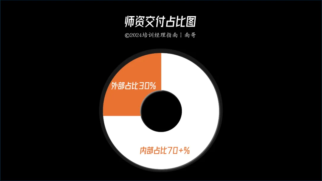 通常来说,一家公司的培训体系中,内部师资交付的培训项目占比是70%+,而外部引入的培训项目大概是占30%。