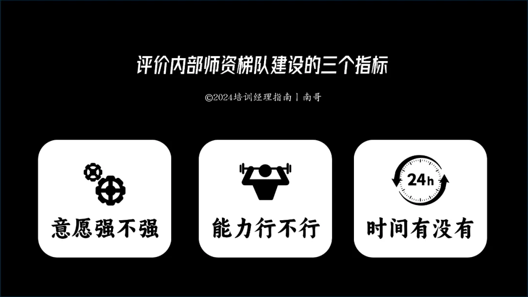 - 意愿强不强:我们的内部专家愿不愿意花时间去做课件的开发,去站到讲台讲课、去备课,这件事愿不愿意去做辅导?